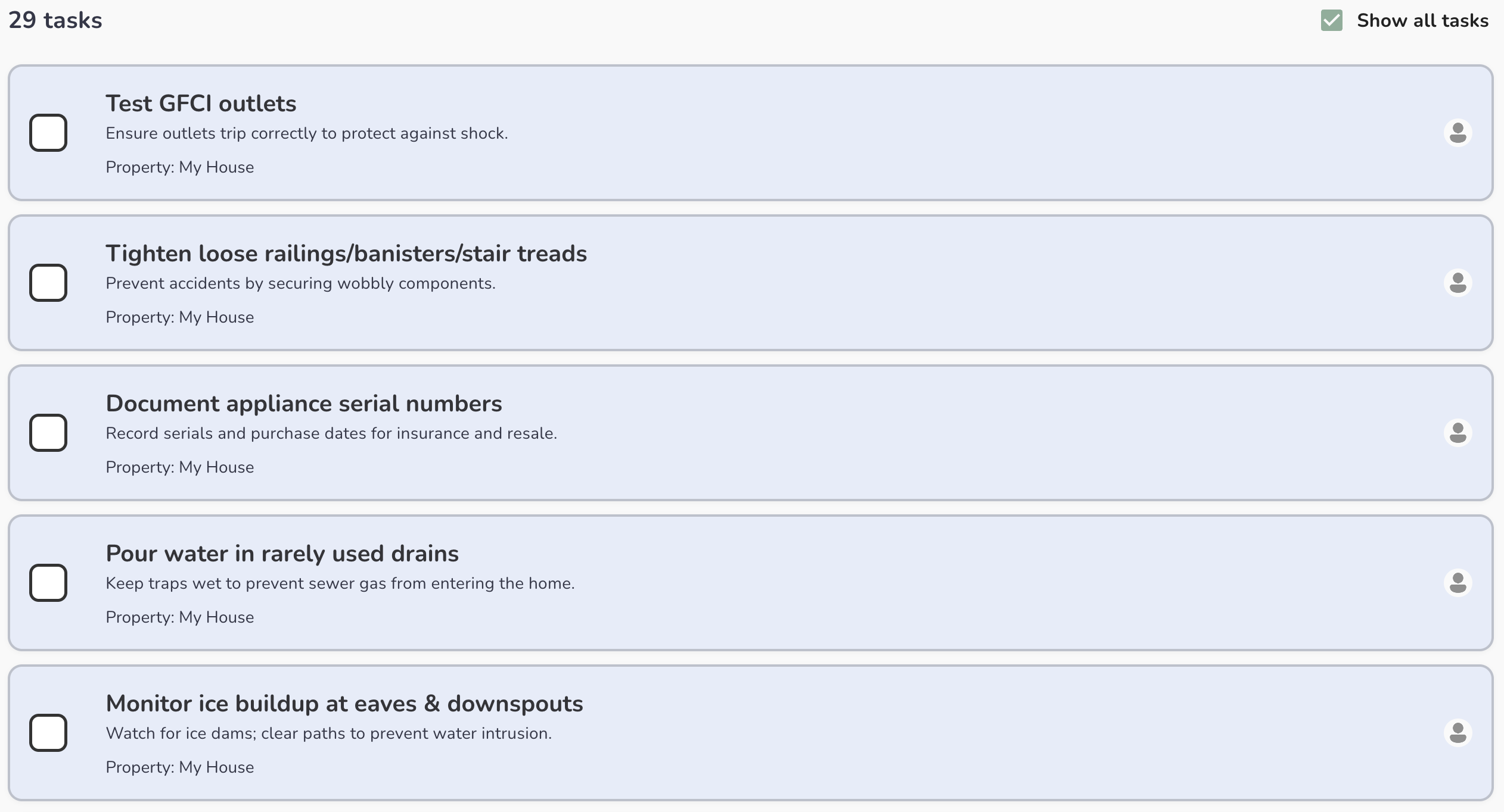 Discover how to create recurring tasks like changing air filters, flushing water heaters, or seasonal maintenance and assign them to others! Manage all of this on your Tasks page, which is located on the left side tool bar.