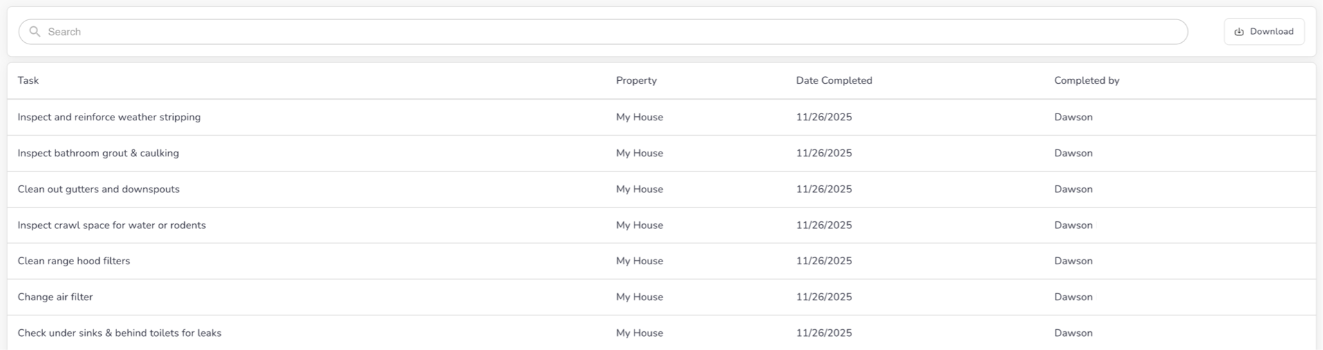 You might have other people that you share a property with. Completed By will show which person in your household completed the corresponding task.